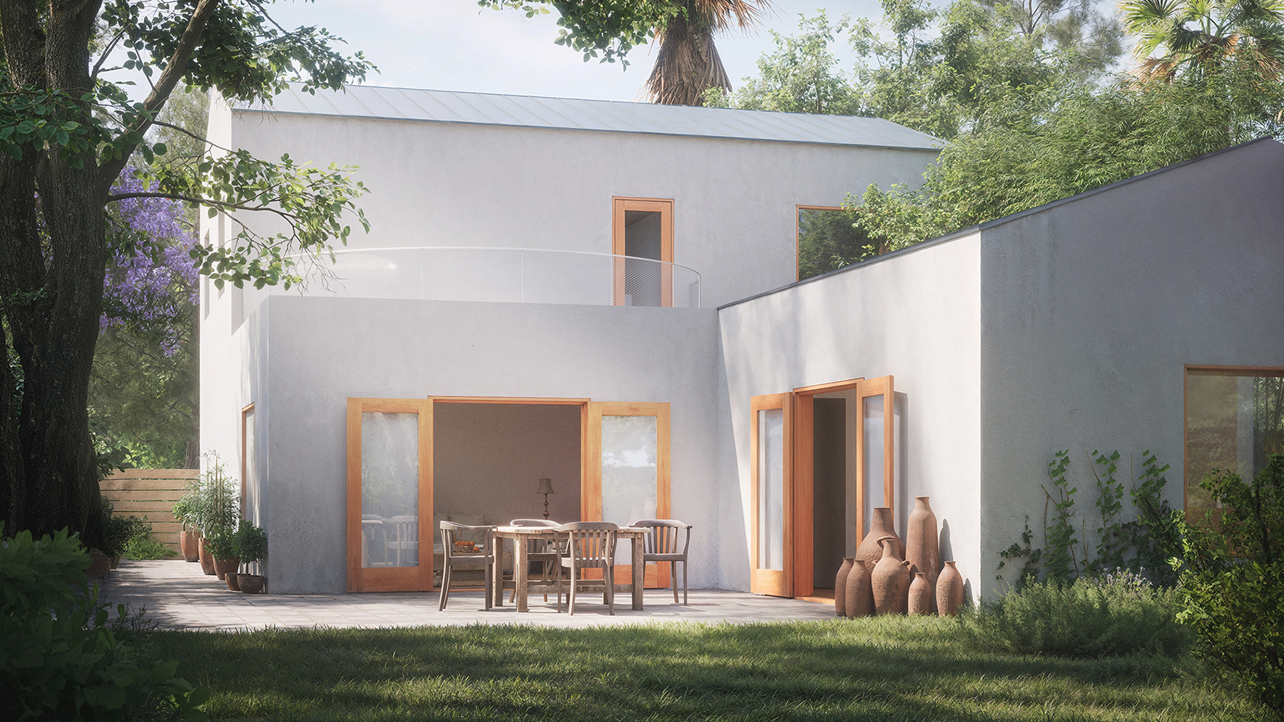 The Garden House is designed to fit in a typical LA lot. Its narrow design compacts the sleeping quarters in a economical, straight forward two stories volume. Contrasting, the living areas, stretch thru the backyard in one story volumes, defining two independent patio areas with different sun exposures and moods.